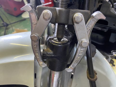 カバーを外したら上側のクリップを外す為にプーラーを掛けます。