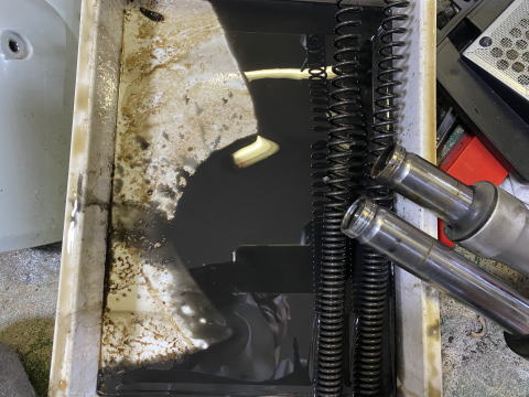 リアサスのグリスアップとフロントフォークのオイル交換をしておきます。